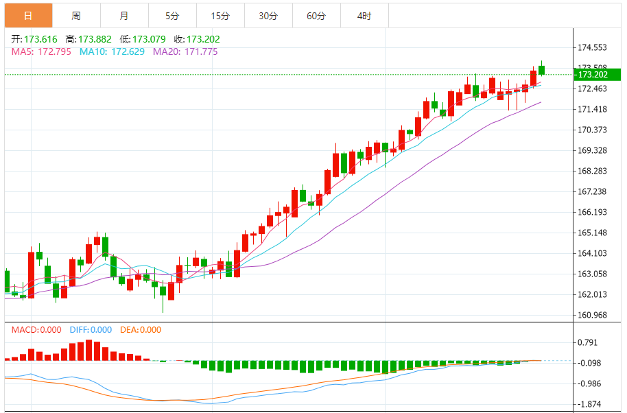 技术上,欧元兑日元成功超越173.25附近的阻力,宣布准备通过触及173.90水平来恢复多头攻击,并形成一些横盘交易来再次聚集积极的动力。