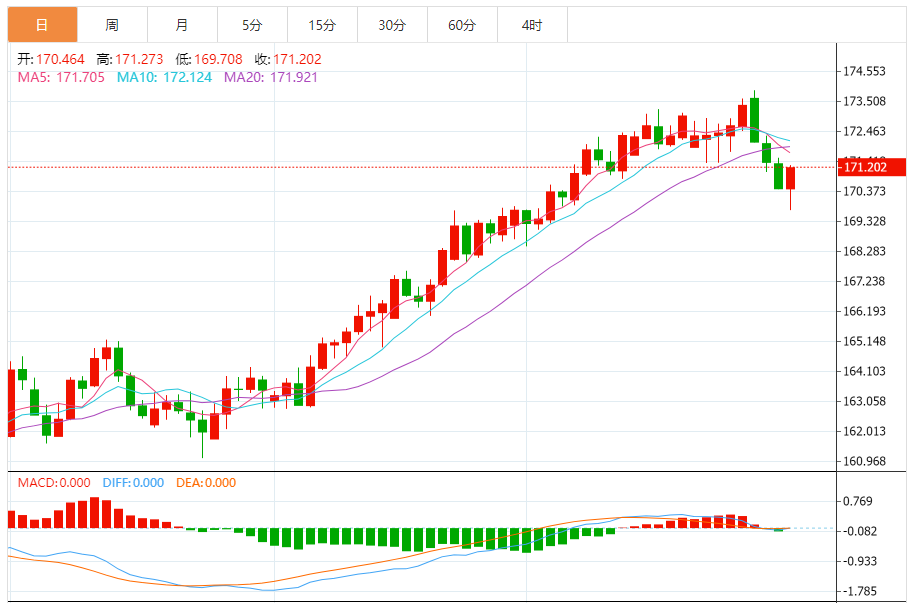 今天的预期交易区间:在169.20至170.70之间