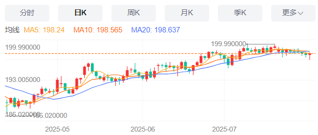 周四,英镑/日元上涨0.12%至198.15附近。