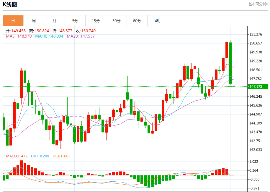 阻力位:150.10 149.40 148.50
