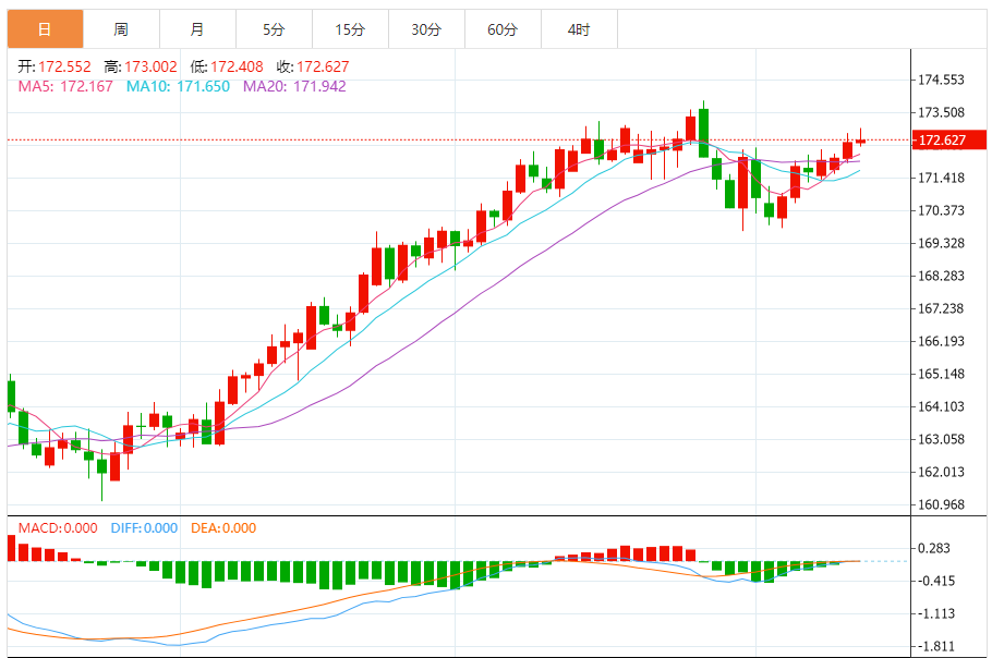 今天的预期交易范围:在172.35和173.45之间