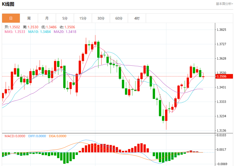 周二盘中,英镑/美元报1.3507,涨幅0.04%。