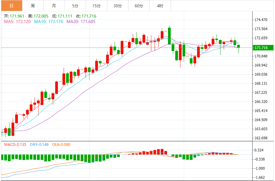 今天的预期交易区间:在170.45至172.30之间