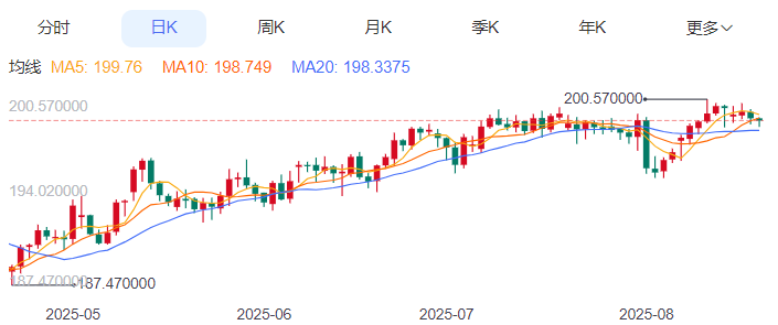今天的预期交易区间:在198.10至199.40之间