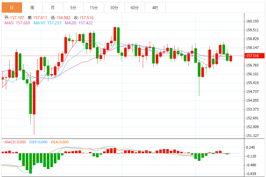 今天的预期交易范围:在157.65和157.00之间