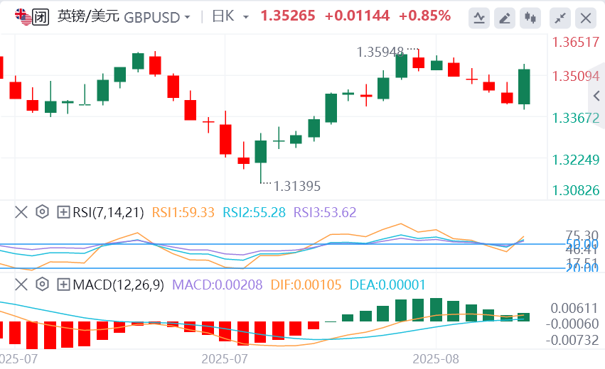 英镑本周总结 美元周五普遍大跌,此前美联储主席鲍威尔指出可能在9月会议上降息但未做出承诺。衡量美元兑一篮子货币(包括日元和欧元)汇率的美元指数日内下跌0.96%,报97.66,鲍威尔发表讲话前该指数交投于98.7附近。 欧元兑美元上涨1.06%,报1.1728,最高触及1.1742,为7月28日以来最高。美元兑日元下跌1.08%,至146.77。 “虽然劳动力市场似乎处于平衡状态,但这是一种奇怪的平衡,是由于工人的供需两方面都明显放缓造成的,”鲍威尔说:“这种不寻常的情况表明,就业的下行风险正在上升。” 鲍威尔在怀俄明州杰克森霍尔举行的美联储年度会议上对与会的国际经济学家和政策制定者说:“如果这些风险变为现实,它们可能会迅速发生。” 多伦多Corpay首席市场策略师Karl Schamotta说,鲍威尔的讲话比市场预期的要鸽派得多。他说:“美元正在暴跌,9月降息的几率正在上升,市场参与者显然在为即将到来的更多宽松政策做准备。” 据芝商所的FedWatch工具显示,交易商目前对美联储在9月16-17日政策会议上降息几率的定价为85%,高于上周五早些时候的72%。他们还将年底前降息的预期幅度从48个基点提高到54个基点。 “现在,阻止9月降息的举证责任显然落在了数据身上,”美国银行的经济学家在周五的一份报告中表示。在7月份的就业报告意外疲软之后,交易员们一直在提高对9月份降息的预期。消费者物价数据显示,到目前为止,关税对通胀的影响有限。但高于预期的生产者价格通胀和其他一些经济数据,包括强劲的8月商业活动调查,使他们缓和了看法。 现在,劳动力市场数据有望成为美联储未来政策的主要驱动力。 美国总统特朗普表示他可能寻求解雇美联储理事库克后,市场对美联储的独立性感到担忧,美元本周也不时因此承压。特朗普周五表示,如果库克不辞职,他将解雇她,此前他曾在周三呼吁库克辞职,理由是有关她在密歇根州和佐治亚州持有抵押贷款的指控。特朗普曾多次批评鲍威尔在降息方面过于迟缓,交易员们预计,当鲍威尔的任期于明年5月结束时,他将任命一位更加鸽派的人取代鲍威尔。 英镑兑美元上涨0.86%,至1.3527。澳元兑美元升1.14%,至0.6492。 英镑下周展望 英镑支撑在1.3496,阻力在1.3587。周五美元大跌后欧元大幅上行,英镑也伴随反弹,反弹打破空头云压制,我们关注英镑在1.3587的阻力位置有效性,若有更多的能量分布建立突破,多头云也将再次建立。 日线上,英镑回踩均线后反弹,欧磅出现多日连续震荡但是仍然维持在均线上方,周五在均线前反弹。目前1.34均线支撑是英镑多头的后盾。同时交叉货币对欧磅能否下破均线0.858是个导火索,若能下破英镑将进入加速上行状态。 |