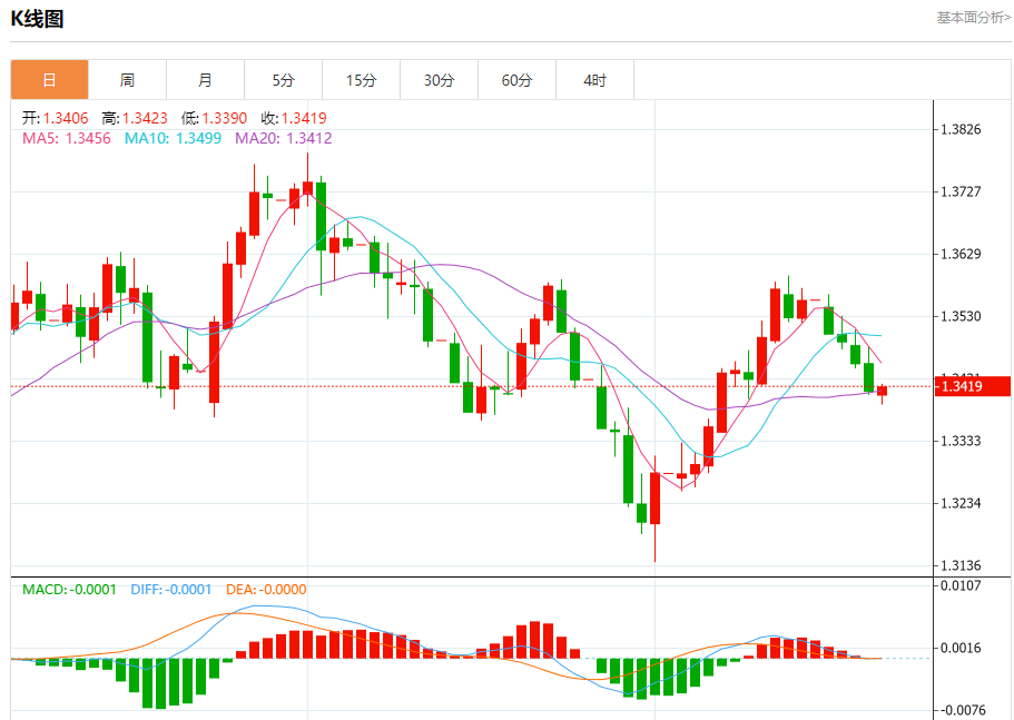 周五盘中,英镑/美元报1.3416,涨幅0.03%。
