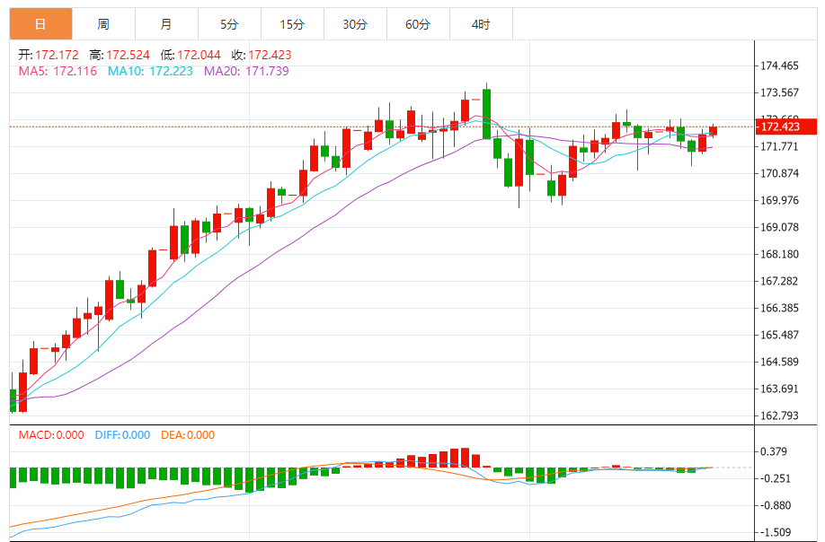 技术上,受主要指标矛盾持续的影响,欧元兑日元提供了缓慢的混合交易,使其波动保持在172.00的初始关口附近。