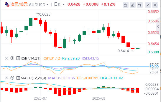 8月22日,周五亚市盘中,澳元在连续四天下跌后稳定在两个月低点0.6414附近。然而,周四公布乐观的标准普尔全球美国采购经理人指数(PMI)数据后,美元(USD)上涨,澳元/美元货币对下跌。澳元也面临下行压力,8月份消费者通胀预期上涨3.9%,低于之前4.7%的涨幅。 8月份标准普尔全球美国综合采购经理人指数初值加快步伐,该指数为55.4,前值为55.1。与此同时,美国制造业采购经理人指数从前值的49.8升至53.3,超过市场预期的49.5。服务业采购经理人指数从前值55.7降至55.4,但强于预期的54.2。 交易员预计澳大利亚储备银行(RBA)在上周降息后将保持谨慎。然而,投资者预计央行可能会在11月大幅降息50个基点,从而恢复宽松政策。 美国前一周初请失业金人数升至235人,创下八周新高,高于市场普遍预期的225人,表明劳动力市场状况有所疲软。 强劲的采购经理人指数数据加上初请失业金人数的上升凸显了美联储在权衡持续通胀压力与劳动力市场疲软证据方面面临的挑战。根据CMEFedWatch工具,联邦基金期货交易员目前预计9月降息的可能性为74%,低于周三的82%。 联邦公开市场委员会(FOMC)7月29日至30日会议纪要显示,大多数美联储(Fed)官员在上个月的会议上强调,由于关税加深了政策制定者之间的分歧,通胀风险超过了劳动力市场的担忧。大多数政策制定者认为将基准利率维持在4.25%-4.50%区间是合适的。 据美国有线电视新闻网报道,白宫新闻秘书卡罗琳·莱维特周二宣布,俄罗斯总统弗拉基米尔·普京和乌克兰总统弗拉基米尔·泽连斯基举行双边会晤的计划目前正在进行中。 美国财政部长斯科特·贝森特周一晚些时候表示,美国和中国之间的谈判进展顺利,并补充说,他预计美国的增长将在第四季度(第四季度)回升。贝森特进一步指出,目前与中国的安排非常有效,因为该国仍然是关税收入的最大贡献者。 澳大利亚8月份标准普尔全球制造业采购经理人指数为52.9,前值为51.3。与此同时,服务业采购经理人指数从前值54.1升至55.1。综合采购经理人指数从之前的53.8升至54.9。 澳大利亚西太平洋银行消费者信心指数继7月份上涨0.6%后,8月份飙升5.7%至98.5。消费者信心已达到2022年2月以来的高位,澳大利亚储备银行(RBA)自1月以来已降息总计75个基点。 澳大利亚宏观预测主管马修·哈桑(MatthewHassan)表示,长期的消费者悲观情绪可能即将结束,尽管保持势头可能需要进一步宽松。不过,他强调,政策制定者并没有立即面临进一步减产的压力。 正如市场普遍预期,澳大利亚储备银行(RBA)周二降息25个基点(bps),将官方现金利率(OCR)从8月政策会议的3.85%降至3.6%。 澳元/美元技术分析 周五澳元/美元汇率交投于0.6420附近。短期价格动能较弱,因为日线图上的技术分析表明该货币对仍低于九日指数移动平均线(EMA)。此外,14天相对强弱指数(RSI)位于50水平下方,表明市场偏见看跌。 下行方面,澳元/美元可能会瞄准8月21日创下的两个月低点0.6414,随后是6月23日触及的三个月低点0.6372。 澳元/美元货币对可能瞄准主要障碍9日均线0.6461,然后是50日均线0.6488。突破这些水平可能会改善中短期价格动能,并促使澳元/美元将目标定为8月14日达到的月度高点0.6568,随后是7月24日创下的九个月高点0.6625。 |