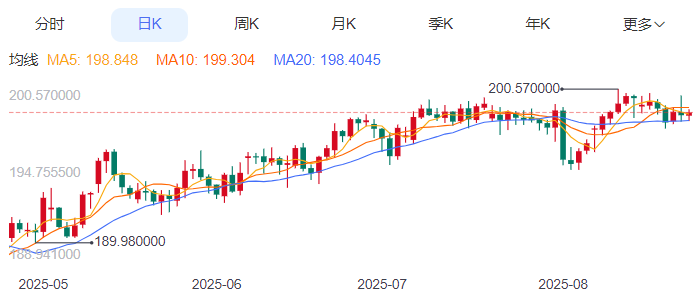 今天的预期交易区间:在198.20至200.80之间