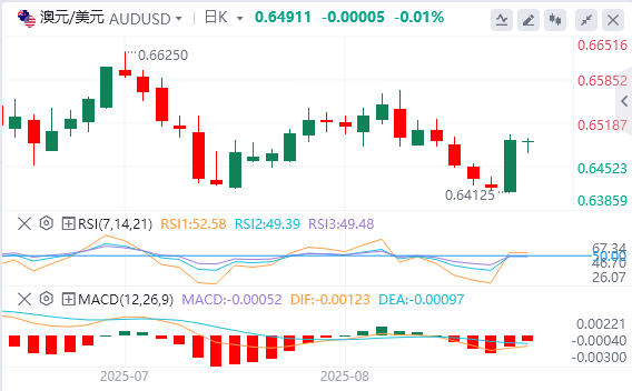 8月25日,周一欧市盘中,澳元/美元在前一交易日上涨超过1%后,周一几乎没有波动。由于美联储(Fed)9月降息的可能性上升,美元贬值,澳元/美元货币对上涨。 美联储主席杰罗姆·鲍威尔周五在杰克逊霍尔研讨会上表示,就业市场面临的风险正在上升,但也指出通胀仍然是一个威胁,而且决定并非一成不变。鲍威尔还表示,美联储仍然认为,可能不需要仅仅基于就业可能超过其最大可持续水平的不确定估计而收紧政策。 交易员预计澳大利亚储备银行(RBA)在上周降息后将保持谨慎。然而,投资者预计央行可能会在11月大幅降息50个基点,从而恢复宽松政策。 根据CMEFedWatch工具,交易员目前预计9月份降息25个基点(bps)的可能性为87%,高于讲话前的75%。 美国前一周初请失业金人数升至235人,创八周新高,高于市场普遍预期的225人,表明劳动力市场状况有所疲软。 强劲的采购经理人指数数据加上初请失业金人数的上升凸显了美联储在权衡持续通胀压力与劳动力市场疲软证据方面面临的挑战。根据CMEFedWatch工具,联邦基金期货交易员目前预计9月降息的可能性为74%,低于周三的82%。 芝加哥联储主席奥斯坦·古尔斯比周四表示,9月份的美联储会议仍可供采取行动。古尔斯比进一步表示,美联储一直在收到有关经济的混合信号。波士顿联储主席苏珊·柯林斯(SusanCollins)表示,即使近期通胀风险持续存在,关税逆风和潜在的劳动力市场疲软,仍表示对最早9月降息持开放态度。 8月份标准普尔全球美国综合采购经理人指数初值加快步伐,该指数为55.4,前值为55.1。与此同时,美国制造业采购经理人指数从前值的49.8升至53.3,超过市场预期的49.5。服务业采购经理人指数从前值55.7降至55.4,但强于预期的54.2。 澳元/美元技术分析 周一,澳元/美元货币对交投于0.6480附近。日线图的技术分析表明,该货币对正试图突破下降通道形态,表明可能从看跌转向看涨。 初始障碍出现在50日指数移动平均线(EMA)0.6491处,与0.6500附近的下降通道上限对齐。成功突破这一关键阻力区可能会导致看涨偏见的出现,并支撑澳元/美元接近8月14日触及的月度高点0.6568,随后是7月24日创下的九个月高点0.6625。 下行方面,澳元/美元货币对可能会在0.6477的9日均线处找到直接支撑。跌破该水平将削弱短期价格动能,并给该货币对带来下行压力,目标是8月21日创下的两个月低点0.6414,随后是6月23日触及的三个月低点0.6372。 |