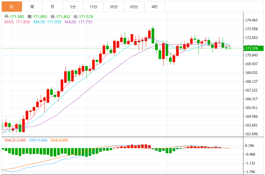 今天的预期交易范围:在171.25和173.40之间