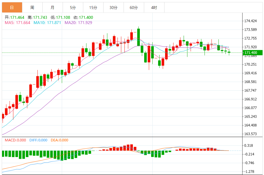 周四,欧元/日元下跌0.08%至171.409附近。