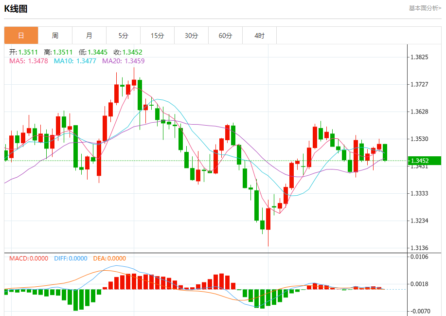 周五盘中,英镑/美元报1.3456,跌幅0.41%。