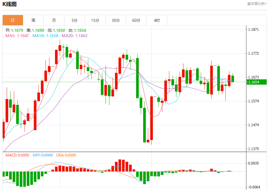 周五盘中,欧元/美元报1.1656,跌幅0.22%。