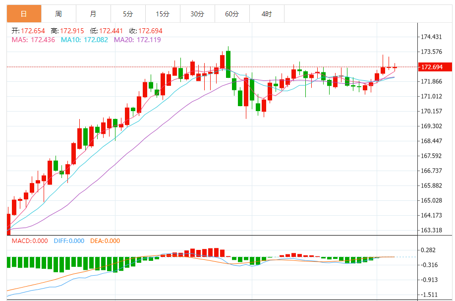 周四,欧元/日元上涨0.00%至172.718附近。
