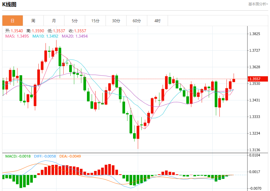 周二盘中,英镑/美元报1.3549,涨幅0.04%。