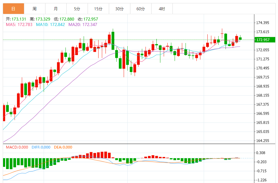 今天预期的交易范围:在171.60到173.50之间。