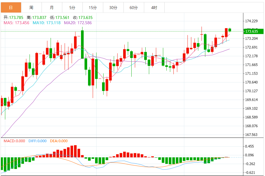 预期今天的交易范围:在173.00和174.25之间。