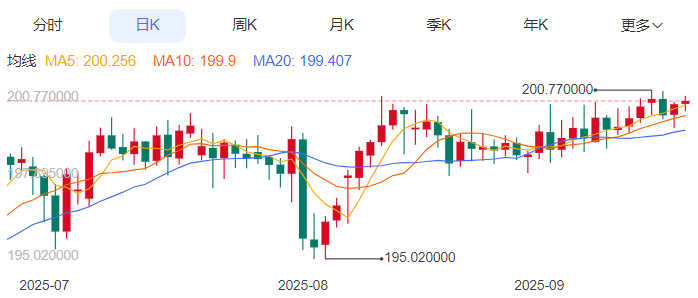 今日预期交易区间为198.60和200.40之间。