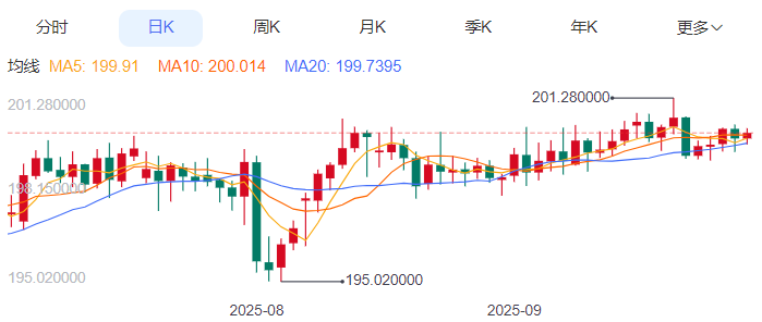 技术上,短期来看,英日央行政策分化的核心逻辑未变,叠加技术面上升通道完好,英镑/日元大概率维持“震荡偏强”格局。若日内能站稳200.00关口且成交量放大20%以上,有望进一步冲击201.00-201.27区间;若未能突破,则可能回落至199.25-199.50区间整理。