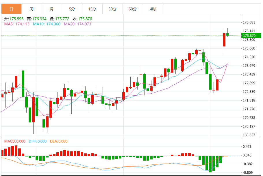今日预期交易区间:在175.40至176.95之间。