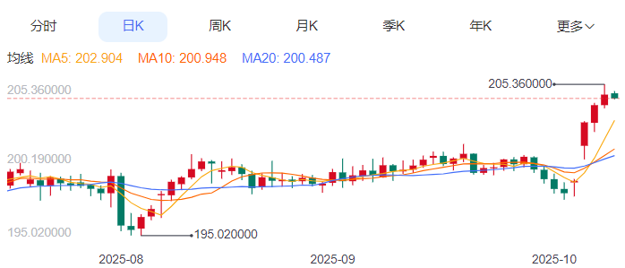 今日预期交易区间为:203.80至205.15。