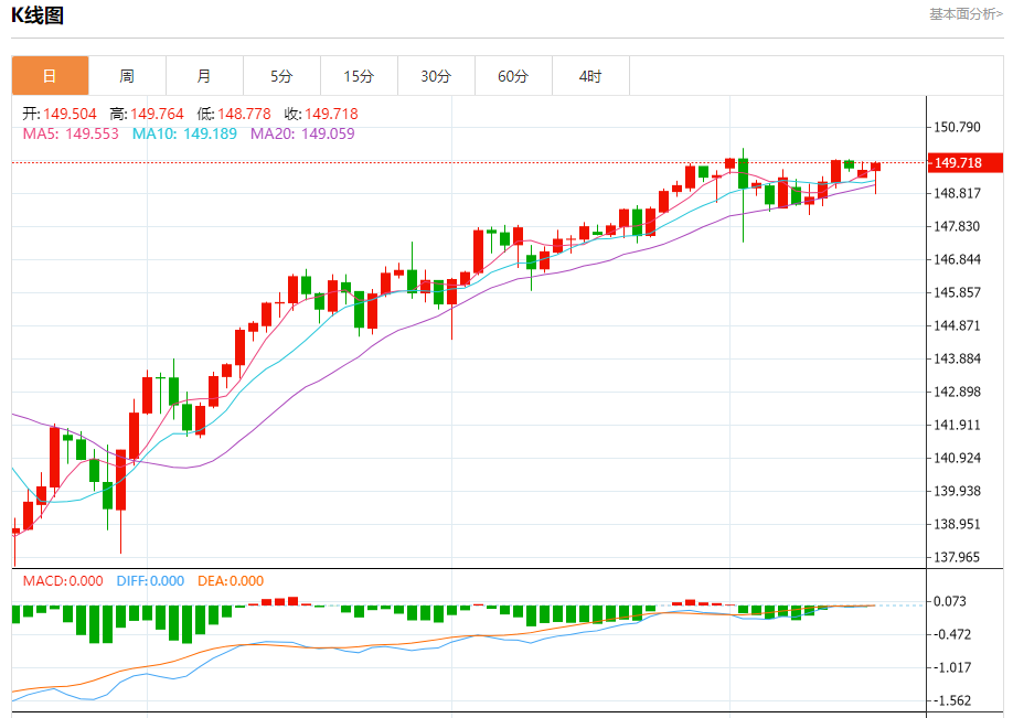 周二盘中,美元/日元报149.713,涨幅0.13%。