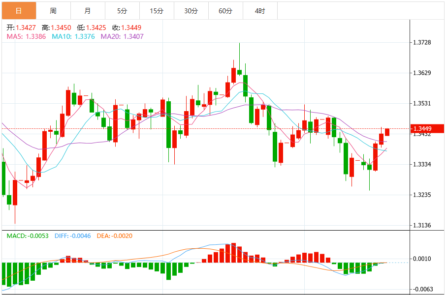 周五亚盘,英镑/美元维持上涨,英镑(GBP)在周四对美元(USD)走强,连续第二天上涨。 截至发稿时,英镑/美元交易约为1.3431,反弹之前曾在周二短暂跌至两个半月低点。 |