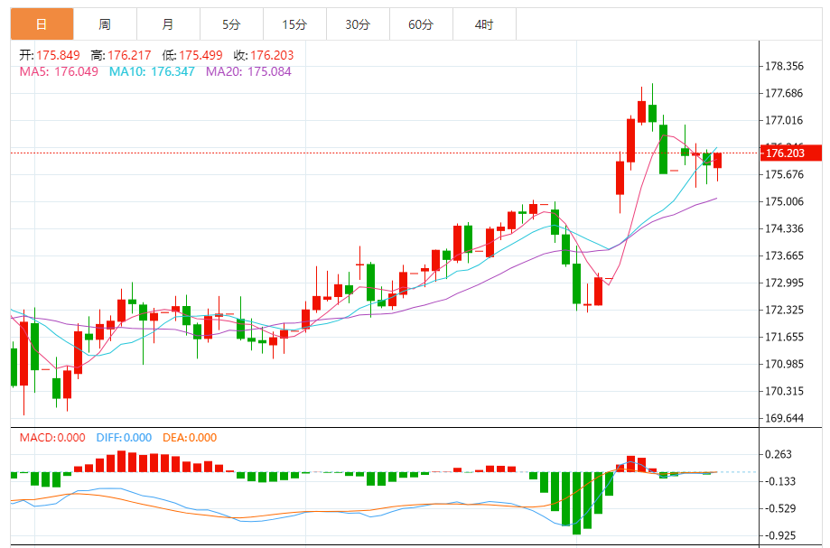 技术上,欧元兑日元在175.20的额外支撑位上方提供了新的收盘价,证实了牛市的延续,并在176.00形成了牛市。