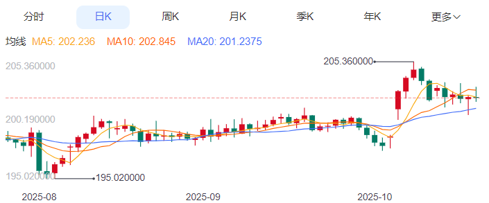 今日预期交易区间为201.70至203.00