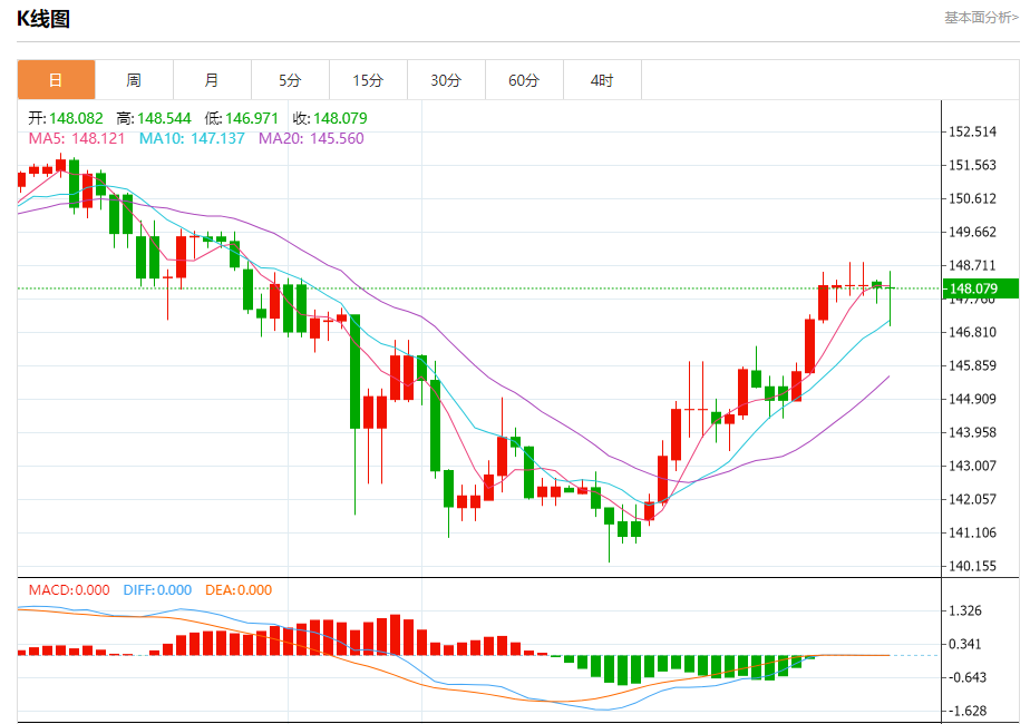 周二盘中,美元/日元报148.098,跌幅0.01%。