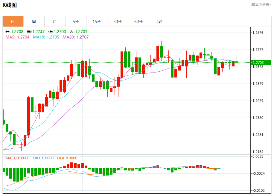 周二盘中,英镑/美元报1.2704,跌幅0.04%。