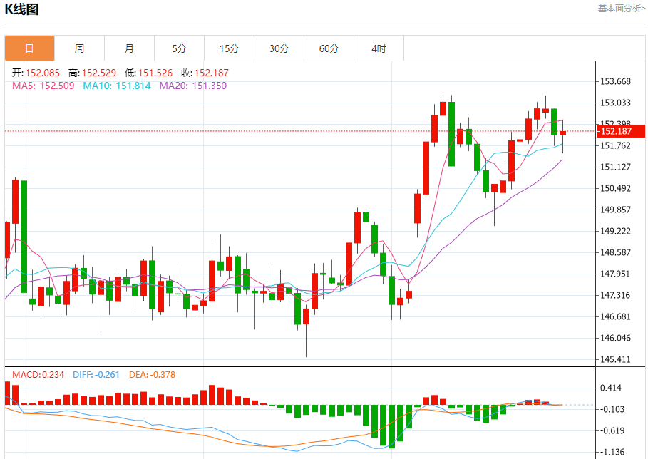 周三盘中,美元/日元报152.214,涨幅0.08%。