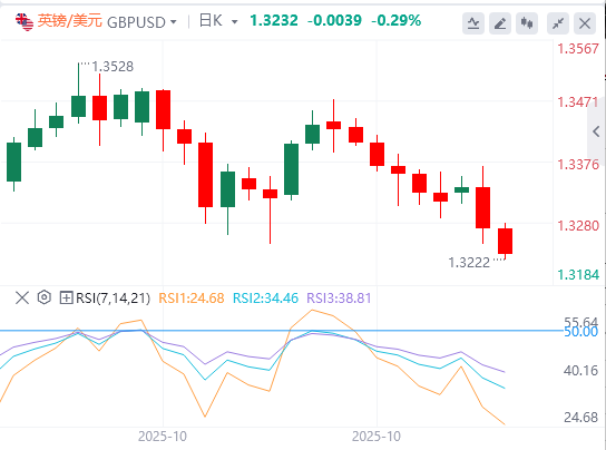 周三欧洲交易时段,英镑/美元创下近三个月新低,至1.3230附近。英镑/美元货币对暴跌,因为美联储(Fed)于GMT18:00宣布货币政策以及英镑持续表现不佳,美元指数走高。截至撰写本文时,美元指数上涨0.2%至99.00附近。 投资者热切等待美联储的政策公告,以获得有关利率前景的线索,同时仍然对美联储将连续第二次降低借贷利率充满信心。 根据CMEFedWatch工具,交易员已经完全消化了利率下调25个基点(bps)的预期,这将将其推低至3.75%-4.00%的区间。该工具还显示,交易员相信美联储将在12月的政策会议上再次降息。 美国通胀降温、就业市场疲软以及联邦政府持续停摆是美联储坚定鸽派押注背后的主要因素。周二,美国参议院民主党领袖查克·舒默表示,正在进行的政府关门将延长至11月。 “11月1日,30多个州的人们在看到他们的账单时会感到震惊——震惊——他们会大喊大叫。据路透社报道,我相信共和党人与我们谈判的压力将会越来越大,“舒默告诉记者。 周三,英镑兑主要货币继续表现不佳,因为投资者预计英国财政大臣雷切尔·里夫斯将在即将到来的秋季预算中面临在何处增税和削减支出的艰难选择。 花旗周二的一份报告显示,工党将提高对消费者的税收,反对增加公司税或增加雇主对社会保障计划的缴款,以资助其近30-350亿英镑的财政收缩。报告还显示,英国财政大臣里夫斯可能会将股息税率从8.75%提高到16%-17%,并对糖和**实施新的关税。 增加家庭税收的情况可能会抑制市场情绪,从而打压整体消费者支出。 在货币政策方面,投资银行公司高盛目前预计英国央行(BoE)将在下周的货币政策会议上将利率下调25个基点(bps)至3.75%。由于劳动力市场疲软,这家投资银行公司对11月份的政策转为鸽派。 与高盛的预期相反,路透社最近的一项民意调查显示,英国央行不会在今年最后一个季度降息。民意调查还显示,央行将在2026年第一季度下调借贷利率。 英镑/美元技术分析 周三,英镑/美元将下行走势扩大至1.3230附近。英镑/美元货币对的整体趋势已转为看跌,因为它跌破了200日指数移动平均线(EMA),该平均线交投于1.3295附近。 14天相对强弱指数(RSI)跌破40.00。如果RSI保持在该水平以下,就会出现新的看跌势头。 向下看,8月1日低点1.3140将成为关键支撑区域。从好的方面来看,1.3500的心理水平将成为关键障碍。 |