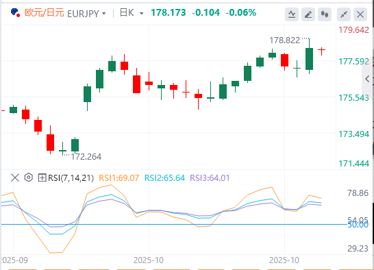10月31日,周五欧市初盘,欧元/日元交叉盘在177.85区域附近吸引了一些逢低买家,目前,它似乎已经停滞了从前一天触及的历史高点的小幅回调。现货价格目前交投于178.15区域附近,当天几乎持平,并有望实现强劲的月度涨幅。 在日本首都东京公布更强劲的消费者通胀数据后,日元(JPY)今天早些时候确实小幅上涨,该数据支持日本央行(BoJ)坚持其政策紧缩路径。然而,最初的反应很快就消退了,因为投资者仍然不确定日本央行下一次加息的可能时间,因为人们猜测日本新首相高市早苗将推行激进的财政支出计划并抵制政策紧缩。这反过来又限制了日元的任何有意义的上涨空间,并为欧元/日元交叉盘提供了一些支撑。 与此同时,欧洲央行(ECB)周四连续第三次会议将利率维持在2%不变。此外,欧洲央行重申,尽管全球贸易存在不确定性,但欧元区经济继续表现出韧性,通胀仍接近2%的中期目标,因此政策处于良好状态。这进一步有助于限制欧元/日元交叉盘的下行空间,并支持延续近期既定上升趋势的理由。因此,任何有意义的修正回调仍可能被视为买入机会,并且更有可能保持有限。 |