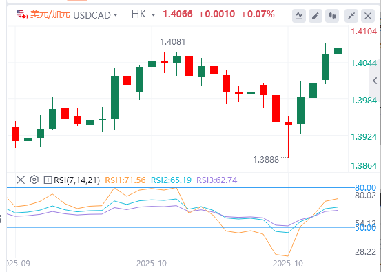 11月4日,周二亚市盘中,美元/加元徘徊在1.4066附近。 周一,加元兑美元遭遇市场长期疲软,兑美元连续第三个交易日下跌,并回落至近期低点,推动美元/加元货币对回到1.4050区域。 加拿大央行(BoC)上周又将利率下调25个基点,与美联储(Fed)的25个基点降息幅度一致。随着加元与美元的利差同步走势,加元既不会因央行的举动而获利也不会损失,从而使加元交易者锁定在正在努力应对贸易战影响的经济体上。加拿大经济还严重依赖原油市场活动,顽固的低桶价对加元没有好处。 美元/加元已回升至1.4050区域,随着加元兑美元继续下跌,美元/加元有望在七个月高点上新一轮上涨。 在过去四个日历月中,加元兑美元连续三个月下跌。 标准普尔加拿大制造业采购经理人指数(PMI)显示,尽管10月份整体商业状况有所改善,但总体预期仍处于收缩性,随着贸易战关税继续侵蚀加拿大经济的外部边缘,企业经营者继续预计未来情况将恶化。 加拿大央行行长蒂夫·麦克勒姆周一指出,尽管加拿大劳动力市场持续疲软,并且需要货币政策效应持续刺激,但美国总统唐纳德·特朗普的大部分贸易关税继续由美国企业和消费者支付。 美元/加元技术分析 美元/加元在日线烛台上的势头发生积极转变,在经历了数月的稳定盘整并从6月低点1.3350附近温和复苏后,带来了乐观情绪。最近,价格走势突破了50天和200天指数移动平均线(EMA),这通常被视为表明潜在趋势逆转的积极信号。50日均线正在200日均线上方完成“黄金交叉”,进一步增加了在新的耗尽点后继续看涨的可能性。最新的蜡烛反映了短暂跌至1.3850支撑位后强烈的买盘兴趣,表明买家渴望在下跌时介入。 买盘目前正在测试1.4050至1.4100之间的阻力区,该水平自8月以来历来限制了反弹。日收盘价稳健高于该区间可能为向1.4300水平移动铺平道路,而未能突破可能会导致重新测试1.3900–1.3850支撑区域以确认。RSI约为60,表明在超买之前仍有进一步上涨的空间。短期内,交易员将关注势头能否保持在1.4050上方以确认突破,或者该水平的拒绝是否暗示持续的区间波动。 |