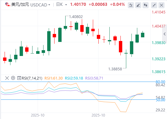 11月3日,美元/加元在连续两天上涨后保持稳定,周一亚洲时段交投于1.4010附近。随着加元因油价上涨而上涨,该货币对陷入困境。值得注意的是,加拿大是美国最大的原油出口国。 截至撰写本文时,西德克萨斯中质原油(WTI)油价保持在每桶61.00美元左右。由于石油输出国组织及其盟国(OPEC+)发出暂停增产信号,原油价格升值。欧佩克+周日表示,在下个月再次小幅加息后,计划在2026年第一季度(Q1)暂停增产。 然而,美元/加元货币对可能会收复失地并继续连续第三个交易日上涨,因为美元(USD)受到美联储(Fed)今年第二次下调基准隔夜借款利率至3.75%-4.0%区间后,对美联储(Fed)12月降息预期的抑制支撑。 美联储主席杰罗姆·鲍威尔在会后新闻发布会上表示,12月再次降息还远未确定。鲍威尔还警告说,在官方数据报告恢复之前,政策制定者可能需要采取观望态度。根据CMEFedWatch工具,联邦基金期货交易员目前预计12月降息的可能性为69%,低于一周前的93%。 然而,由于政府长期关门,交易者可能会采取谨慎态度,这可能会加剧美国(US)的经济担忧。美国政府的僵局现已进入第六周,在国会就共和党支持的资助法案陷入僵局的情况下,看不到轻松的结局。 |
