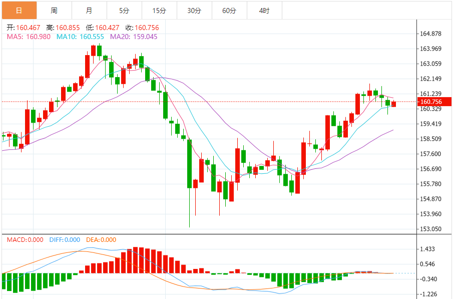 今天的预期交易范围:在160.85和159.60之间