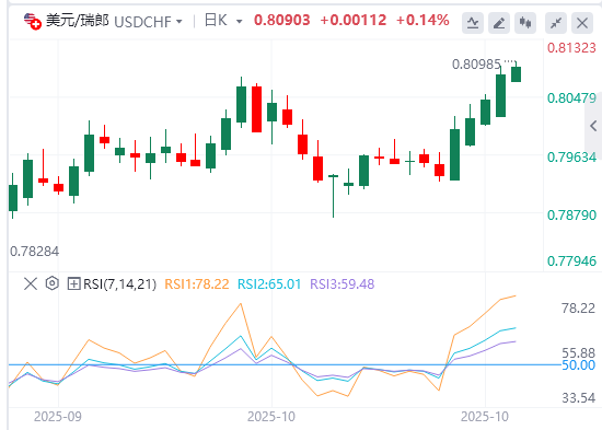 11月4日,周二欧市初盘,美元/瑞郎货币对连续第五天吸引买家,并攀升至8月22日以来的最高水平。这一势头将现货价格推高至0.8100附近,并受到美元(USD)持续买盘的推动。 在美联储(Fed)鹰派倾向的背景下,追踪美元兑一篮子货币的美元指数(DXY)升至三个多月高点。事实上,美联储主席杰罗姆·鲍威尔反驳了市场对12月再次降息的预期。这有助于抵消对美国政府长期关门带来的经济风险的担忧,并继续成为美元带来的推动力,进而推动美元/瑞郎走高。 与此同时,瑞士法郎(CHF)可能会继续表现相对不佳,因为疲软的通胀数据重新引发了人们对瑞士国家银行(SNB)将把利率降至负值区域的押注。与美联储的前景相比,这标志着存在重大分歧。除此之外,围绕全球金融市场的潜在看涨情绪削弱了瑞士法郎,这反过来又有利于看涨交易者,并支持美元/瑞郎货币对近期进一步升值的理由。 展望未来,在美国政府持续关闭的情况下,美国没有任何影响市场的相关经济数据。然而,将仔细审查有影响力的联邦公开市场委员会成员的评论,以寻找有关未来降息路径的更多线索,这反过来又将推动美元需求。除此之外,更广泛的风险情绪将被关注,以抓住美元/瑞郎货币对的短期交易机会。 |