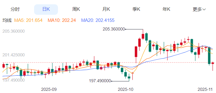 今日预期交易区间:为198.75至200.75之间。