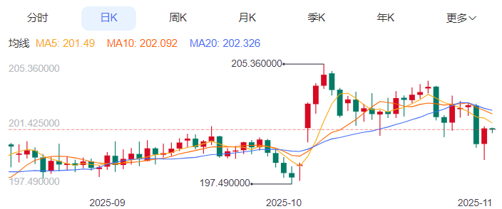 英镑方面,英国三季度GDP环比零增长虽引发衰退担忧,但10月服务业PMI意外回升至50.2(荣枯线上方),显示经济韧性超预期。尽管搜索中未获取2025年11月6日发布的英国10月零售销售数据,但市场此前担忧的“提前降息”预期已有所降温,当前定价英国央行2026年2月首次降息的概率从70%降至58%,与日本央行的政策差收窄压力缓解,为英镑提供底部支撑。