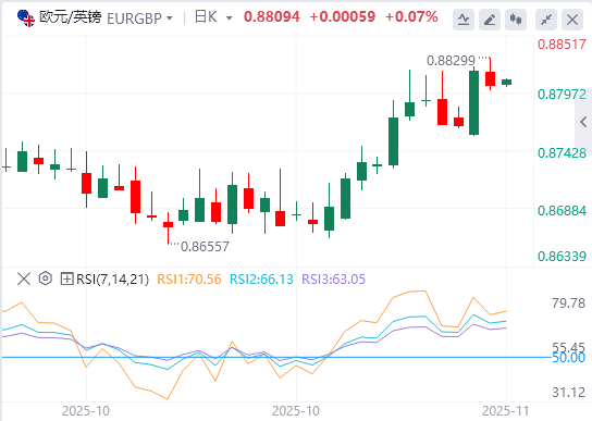 11月6日,周四欧市初盘,欧元/英镑反弹并瞄准2023年5月以来的高点,交投于0.8810附近。在当天晚些时候公布的德国9月工业生产和欧元区零售销售数据之前,货币交叉盘上涨。交易员还等待英国央行(BoE)11月的利率决定。 德国9月经季节性调整的工业生产预计将环比增长3%,收复此前4.3%的降幅。未经季节性调整的工作日调整数据显示,8月份同比下降3.9%。 继8月份增长0.1%之后,欧元区零售销售预计9月份将环比增长0.2%。与此同时,预计年销售额将保持在1%的增长率。 欧元(EU)受到市场预期的支持,即欧洲央行(ECB)可能会在即将举行的政策会议上采取谨慎立场。欧洲央行上周第三次会议将存款利率维持在2.0%不变。央行指出,通胀前景总体稳定,经济持续增长,不确定性持续存在。 由于人们普遍预计英国央行将在11月将政策利率维持在4%不变,英镑(GBP)获得支撑,欧元/英镑货币对的上行空间可能有限。然而,疲软的通胀和工资数据增强了未来几个月降息的理由。 预计财政大臣雷切尔·里夫斯将在11月26日的预算中推出更严格的财政措施,以解决英国的大量借贷需求。里夫斯在预算前的讲话中暗示要提高税收,并强调了管理债务和借贷费用的重要性。 |