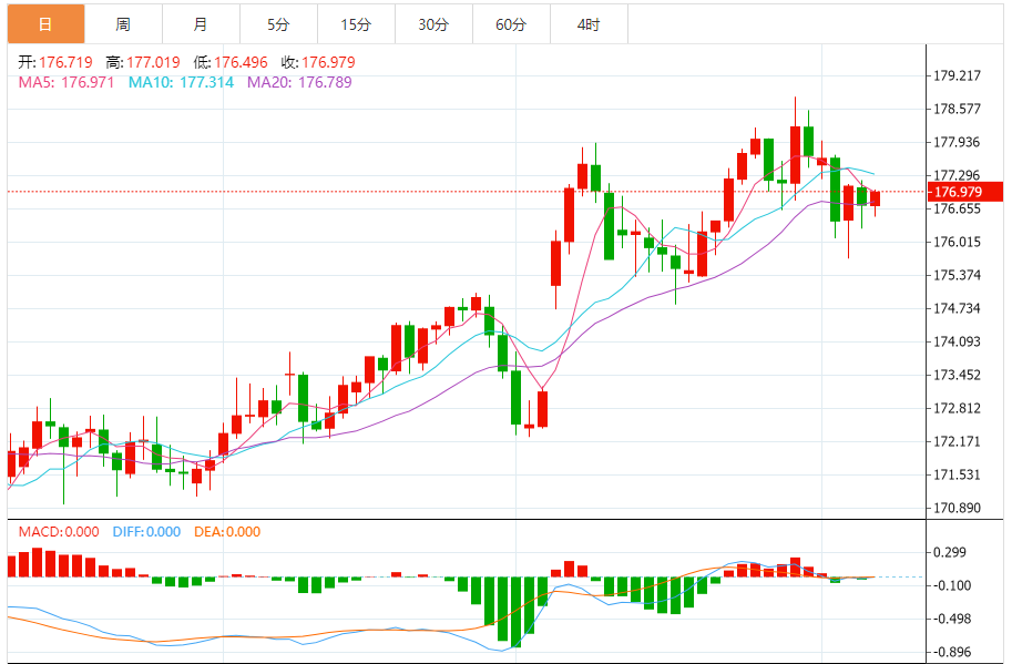 周五,欧元/日元上涨0.15%至177.021附近。