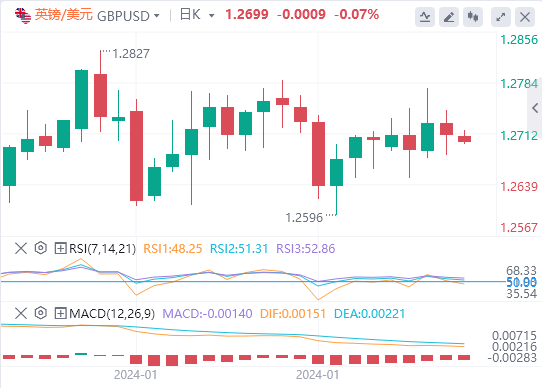 1月26日,周五欧市盘中,在英国央行和美联储下周做出利率决定之前,投资者转为谨慎,英镑因此下跌。人们普遍预计这两家央行将连续第四次维持货币政策不变,但对2024年全年利率的指引将受到密切关注。 预计英国央行决策者将避免讨论降息问题,因为英国经济的通胀压力仍明显高于美国。不过,政策制定者可能会提供一些有关未来降息的线索。美联储上次会议后公布的《经济预测摘要》显示,委员们平均预测2024年将降息三次。 在美联储做出利率决定之前,市场参与者将关注格林威治时间13:30公布的12月份核心个人消费支出(PCE)物价指数数据。如果基本通胀数据仍然居高不下,美联储决策者可能会强调在2024年上半年之后降息。 英镑/美元技术分析 市场情绪谨慎,英镑难以维持在1.2700整数关口阻力位上方。英镑/美元货币对的价格走势表明波动性急剧收缩。近期对英镑/美元的需求正在减弱,因为它难以维持在20期指数移动平均线(EMA)上方,该均线在1.2700附近交投。在日线时间框架上,可以看到在大幅反弹后的库存调整拍卖,这表明没有潜在的经济触发因素来提供新的指导。14期相对强弱指数(RSI)在40.00-60.00之间震荡,表明缺乏新的推动力。 |