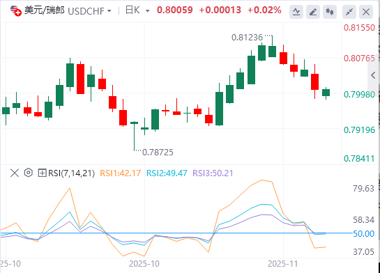 11月12日,美元/瑞郎货币对在周三亚洲交易时段尾盘在0.8000附近谨慎交易。由于人们对美联储今年可能再次降息的预期不断增强,美元(USD)下跌,瑞士法郎货币对面临抛售压力。 截至发稿时,追踪美元兑六种主要货币价值的美元指数(DXY)小幅走高至99.55附近。尽管如此,美元指数仍接近周二发布的周低点99.30。 周二,ADP就业变化四周平均数据公布后,美元下跌,引发美联储鸽派预期。私人薪资处理商ADP报告称,截至10月下旬,雇主每周裁员11.25名。美国就业趋势疲软引发了人们对劳动力市场现状的担忧。 根据CMEFedWatch工具,美联储在12月会议上降息25个基点(bps)至3.50%-3.75%的可能性已从周一的62.4%增加至68%。 与此同时,瑞士法郎(CHF)在瑞士国家银行(SNB)可能转向负利率的预期消退的情况下坚挺。瑞士央行官员最近表示相信通胀可能会在未来几个季度加速。 在全球方面,美国和瑞士即将在两周内签署贸易协议。彭博社本周的一份报告显示,美国和瑞士经济可能会在两周内宣布一项贸易协议,其中华盛顿预计将对从瑞士进口的关税降至15%。 |
