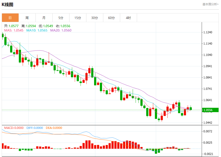 周三盘中,欧元/美元报1.0558,跌幅0.19%。