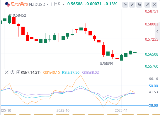 11月13日,周四亚洲交易时段,纽元/美元汇率跌至0.5655附近。在美国众议院通过一项结束政府关门的法案后,美元兑纽元走强。交易员等待将于周五晚些时候发布的中国10月零售销售和工业生产报告。 周三,众议院以222票对209票批准了一项资金计划,并结束了美国历史上最长的政府关门。此前,参议院周一投票通过了该法案。该法案将前往美国总统唐纳德·特朗普的办公桌签署。该立法将大多数机构的资金延长至1月30日,并包括针对政府其他部门的三项全年资金法案。 尽管如此,重新开放将导致因停摆而推迟的大量美国经济数据发布,包括备受期待的月度就业报告。交易员认为,经济数据的恢复将表明经济放缓,这将促使美联储在12月降息,这可能会打压美元。 纽元即将成为今年第一个兑美元下跌的主要发达市场货币,因为新西兰储备银行(RBNZ)激进的降息打压了经济疲软的市场情绪。 在GDP数据弱于预期后,新西兰央行在10月会议上将官方现金利率(OCR)下调50个基点(bps)至2.5%。最近的数据显示,新西兰失业率升至近九年高点5.3%,这支持了新西兰联储进一步降息的理由。反过来,这可能会在短期内继续削弱纽元兑美元。 |