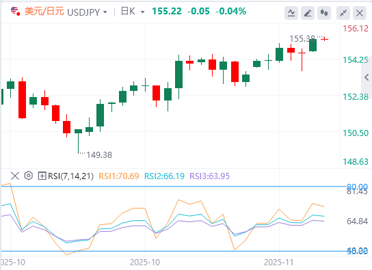 11月18日,周二早盘,美元/日元在155.20附近徘徊。美元兑日元走强,交易员们继续关注期待已久的美国经济数据回归以及美联储(Fed)可能进一步降息的可能性。美国9月份非农就业(NFP)报告将在周四晚些时候成为焦点。 一批因美国政府关门而延迟发布的数据,预计将于本周开始发布,预计将为全球最大经济体的健康状况提供一些线索。分析师认为,美国经济数据的恢复将显示就业市场疲软和潜在放缓。美国劳动力市场若出现疲软迹象,短期内可能对美元造成抛售压力。 与此同时,投资者因不确定性而降低了12月美联储降息的预期。根据芝加哥货币交易所FedWatch工具,市场目前预计下个月降息25个基点(bps)的概率低于40%,而本月早些时候的降息率已超过60%。 尽管增长数据强于预期,日元仍处于二月份以来的最低水平附近。日本首相高市早苗敦促日本银行保持低利率,强调货币政策应支持强劲的经济增长和价格稳定上涨。 尽管如此,交易员仍警惕日本当局干预以遏制日元走弱的威胁。日本财务大臣片山五月上周表示,她将紧迫关注外汇的动向。此外,日本经济大臣木内稔周五表示,日元走弱可能通过进口成本推高CPI,因此对看空的日元持谨慎态度。 |