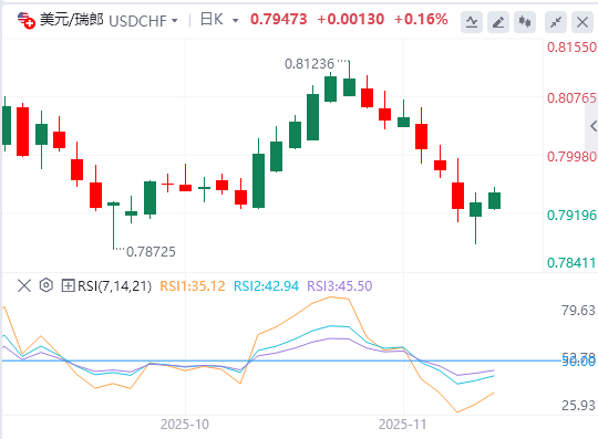11月17日,美元/瑞郎连续第二个交易日继续上涨,周一欧市初盘交投于0.7950附近。随着美联储(Fed)在12月降息的可能性减弱的情况下美元(USD)上涨,该货币对升值。交易员正在为政府重新开放后一波延迟的美国经济数据做准备,寻找有关美联储政策的更明确信号。 备受期待的9月非农就业报告定于11月20日发布,市场还在等待其他关键指标的修订时间表。然而,美国国家经济委员会主任凯文·哈塞特上周警告说,一些10月份的数据可能“永远不会实现”,因为几个机构在停摆期间无法收集信息。 CMEFedWatch工具显示,金融市场目前预计美联储在12月会议上将基准隔夜借款利率下调25个基点(bps)的可能性为46%,低于一周前市场定价的67%。 堪萨斯城联储主席杰弗里·施密德周五表示,货币政策应“倾向于需求增长”,并补充说目前的美联储政策是“适度限制性的”,他认为这是适当的。此外,圣路易斯联储主席阿尔贝托·穆萨勒姆周四表示,利率现在更接近中性而不是限制性,美国经济保持弹性。穆萨莱姆强调需要谨慎行事,并指出在不冒过度宽松政策风险的情况下,放宽的空间有限。 美元/瑞郎货币对的上行空间可能会受到限制,因为在通胀上升的预测中,瑞士国家银行(SNB)将在12月将政策利率维持在0%的预期日益增长,瑞士法郎(CHF)可能会进一步获得支撑。瑞士央行官员表示对通胀上升轨迹充满信心,副行长安托万·马丁表示,通胀“预计将略有上升”。 在瑞士政府确认已与特朗普政府达成15%关税协议后,瑞士法郎也走强——这一进展为瑞士提供了缓解,瑞士此前曾面临对所有发达国家征收的最高关税。 |